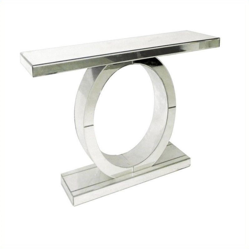 ![]() Pulaski - Console Tables - 730204 - The combination of geometric shapes and mirrored panels gives this accent console a graphic silhouette. The top almost seems to be balanced on the ring mirrored base. The size of this interesting piece is ideal for entryways or hallways and creates an open feel wherever it is used. Finish: Mirrored; Material: Wood Composites, Select Hardwoods; Mirrored top, front and ends. Specifications:Overall Product Dimensions: 31.5"" H x 55"" W x 15.5"" D; Product Weight: 93.89 lbs. Price: 539.99 |