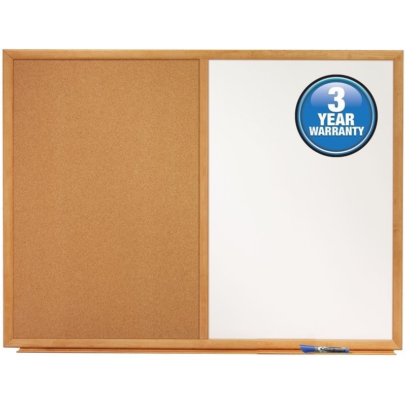 ![]() Quartet - Presentation Boards & Accessories - QRTS553 - Combination dry-erase and natural cork surface is built to last. Resilient cork panel is designed for pinups while the melamine writing surface on tempered hardboard is for use with dry-erase marker. Each board features a robust oak finish frame with a contemporary look. Mounting system makes hanging simple and allows horizontal or vertical mounting. Attach tray for horizontal installation only. Board includes a Quartet dry-erase marker. General Information Manufacturer: ACCO Brands Corporation Manufacturer Part Number: S553 Manufacturer Website Address: http://www.acco.com Product Name: Standard Combination Whiteboard/Cork Bulletin Board Packaged Quantity: 1 Each Product Information Board Height: 24"" (2 ft) Board Width: 36"" (3 ft) Board Surface Color: White Board Surface Material: Melamine Frame Color: Oak Shape: Rectangle Orientation: Horizontal/Vertical Application/Usage: Office Durable,Flexible,Self-healing Miscellaneous Package Contents: Combination Cork and Melamine Board; Tray; Dry Erase Marker. Green Compliant: Yes Warranty Limited Warranty: 3 Year Price: 79.99 |
