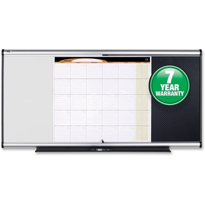 ![]() Quartet - Presentation Boards & Accessories - QRTCBD543A - Three-in-one premium combination board offers a dry-erase surface, bulletin board and calendar. Total Erase writing surface with light grid pattern will not stain or ghost. Self-healing black foam bulletin surface eliminates pinholes. Combination board includes ""Easy Mount"" hanging system for quick and secure installation, attached marker tray and Quartet EnduraGlide dry-erase markers. General Information Manufacturer: ACCO Brands Corporation Manufacturer Part Number: CBD543A Manufacturer Website Address: http://www.acco.com Product Name: Prestige Total Erase 3-In-1 Combo Board Packaged Quantity: 1 Each Product Information Board Height: 24"" Board Width: 36"" Board Surface Color: White,Brown Board Surface Material: Foam Board Frame Material: Aluminum Shape: Rectangle Orientation: Horizontal Placement: Mount Application/Usage: Office,Education,Training Self-healing,Stain Resistant,Ghost Resistant,Scratch Resistant,Dent Resistant,Durable Physical Characteristics Depth: 1.9"" Miscellaneous Package Contents: Total Erase 3-In-1 Combo Board, 3' x 2', Aluminum Frame; Marker Tray; EnduraGlide Dry Erase Markers; Easy Mount Hanging System Warranty Limited Warranty: 7 Year Price: 109.99 |