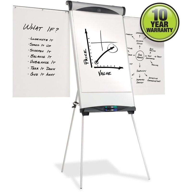 ![]() Quartet - Presentation Boards & Accessories - QRTEU500E - Tripod easel with magnetic dry-erase board features a flip chart pad retainer with adjustable hooks. Pad clamps onto easel for easy-sheet tear away. Accessory marker tray with built-in clips holds dry-erase markers. Extendable arms allow simultaneous display of three sheets of paper. Height-adjustable feature allows you to display easel at full length or on tabletop. Telescoping legs are crossed-brace for added rigidity and fold for easy storage and transport. General Information Manufacturer: ACCO Brands Corporation Manufacturer Part Number: EU500E Manufacturer Website Address: http://www.acco.com Product Name: Euro Magnetic Presentation Easel Packaged Quantity: 1 Technical Information Adjustable Height,Magnetic,Telescoping Physical Characteristics Color: Silver Height: 39"" Width: 27"" Miscellaneous Green Compliant: Yes Warranty Limited Warranty: 10 Year Price: 236.99 |