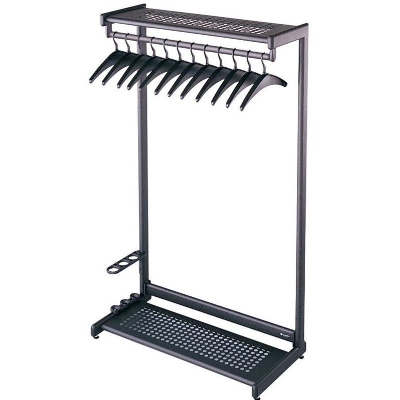 ![]() Quartet - Coat Racks - QRT20222 - Contemporary, radius-designed, movable garment racks are made of textured steel with powder-coat finish. Each includes hangers and features bottom shelf for footwear and attachable rack for umbrellas. Custom-molded hanger rail is evenly indexed to accommodate four to eight hangers per foot. All are 61-1/2"" high, including levelers. Freestanding. General Information Manufacturer: ACCO Brands Corporation Manufacturer Part Number: 20222 Manufacturer Website Address: http://www.acco.com Product Name: Two-Shelf Garment Rack Packaged Quantity: 1 Each Product Information Style: Contemporary Physical Characteristics Color: Black Material: Steel Height: 61.5"" Width: 24"" Miscellaneous Package Contents: Two-Shelf Garment Rack, Freestanding, 24"", Black; 8 x Hanger . Additional Information: Single-sided freestanding garment rack features a top and bottom shelf for double the storage space; Black finish is stylish and modern allowing rack to provide neat, subtle garment storage in meeting and conference rooms; Shelves hold hats, footwear and miscellaneous items; Levelers keep rack stable on all floor surfaces; Attachable umbrella rack and 8 durable hangers included; 100% Satisfaction Guaranteed . Price: 423.99 |