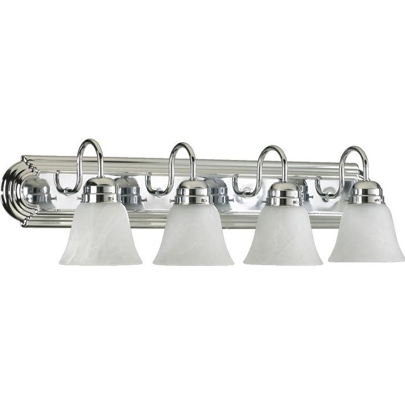 Quorum - Bath & Vanity Lighting - 50944114 - Finish: Chrome Number of Lights: 4Light Wattage: 100Socket: MediumShade Color: Faux AlabasterEnergy Star: NUL Type: DampStyle: Transitional