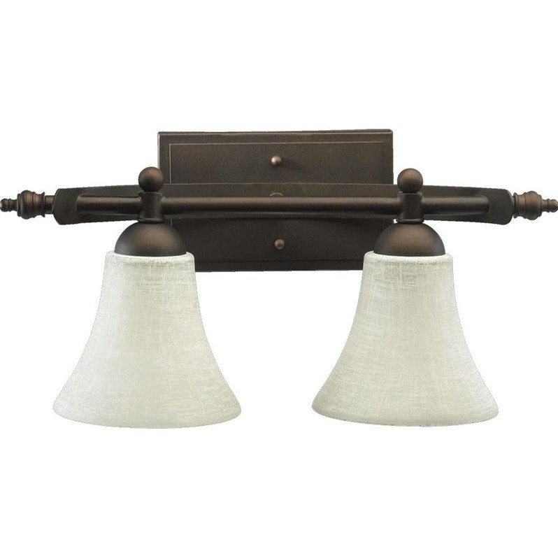 Quorum - Bath & Vanity Lighting - 5077286 - Finish: Oiled Bronze Number of Lights: 2Light Wattage: 100Socket: MediumShade Color: LinenEnergy Star: NUL Type: DampStyle: Transitional
