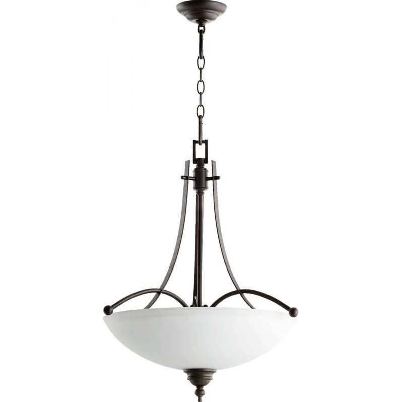 | Quorum Aspen 4 Light Pendant in Oiled Bronze and Satin Opal |