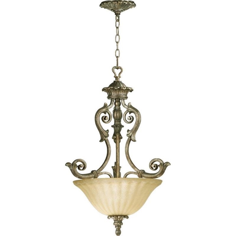 Quorum - Pendant - 8100358 - Finish: Mystic Silver Number of Lights: 3Light Wattage: 75Socket: MediumShade Color: Amber Indian ScavoEnergy Star: NUL Type: DryStyle: Traditional