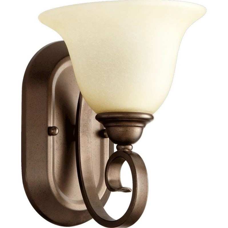 Quorum - Wall Sconces - 5453186 - Finish: Oiled Bronze Number of Lights: 1Light Wattage: 100Socket: MediumShade Color: Amber ScavoEnergy Star: NUL Type: DampStyle: Transitional