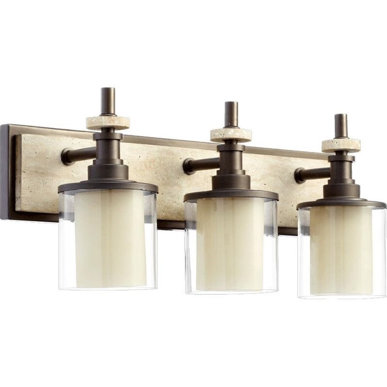 Quorum - Bath & Vanity Lighting - 5064386 - Finish: Oiled Bronze Number of Lights: 3Light Wattage: 100Socket: MediumShade Color: ClearEnergy Star: NUL Type: DampStyle: Transitional