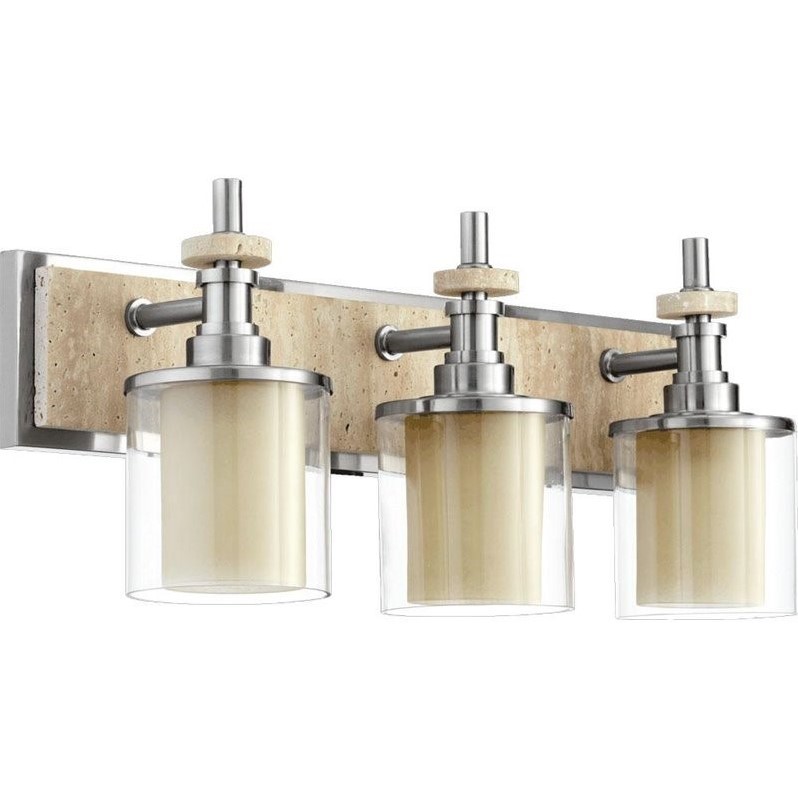 Quorum - Bath & Vanity Lighting - 5064365 - Finish: Satin Nickel Number of Lights: 3Light Wattage: 100Socket: MediumShade Color: ClearEnergy Star: NUL Type: DampStyle: Transitional