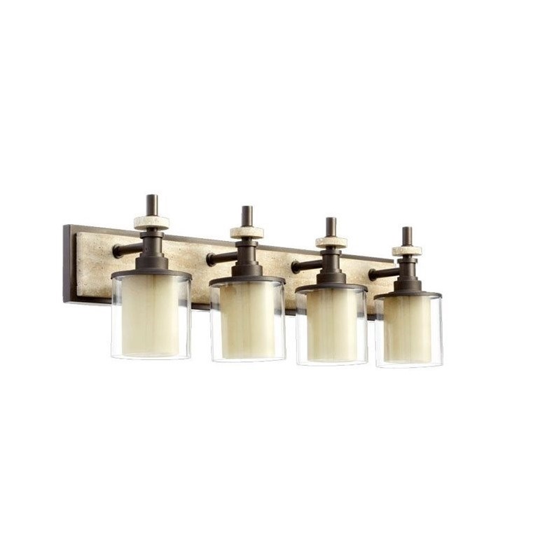 Quorum - Bath & Vanity Lighting - 5064486 - Finish: Oiled Bronze Number of Lights: 4Light Wattage: 100Socket: MediumShade Color: ClearEnergy Star: NUL Type: DampStyle: Transitional