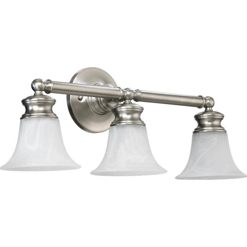 Quorum - Bath & Vanity Lighting - 5174365 - Finish: Satin Nickel Number of Lights: 3Light Wattage: 100Socket: MediumShade Color: Faux AlabasterEnergy Star: NUL Type: DampStyle: Transitional