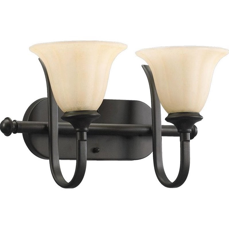 Quorum - Bath & Vanity Lighting - 5194286 - Finish: Oiled Bronze Number of Lights: 2Light Wattage: 100Socket: MediumShade Color: Amber LinenEnergy Star: NUL Type: DampStyle: Transitional