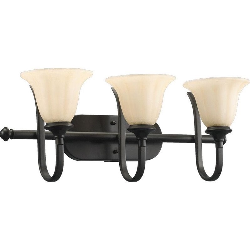 Quorum - Bath & Vanity Lighting - 5194386 - Finish: Oiled Bronze Number of Lights: 3Light Wattage: 100Socket: MediumShade Color: Amber LinenEnergy Star: NUL Type: DampStyle: Transitional