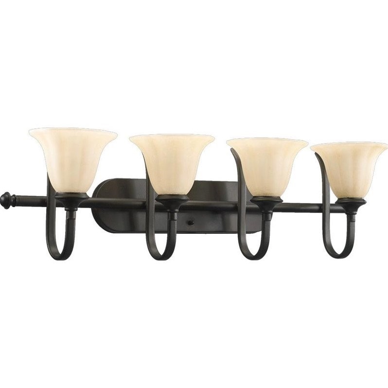 Quorum - Bath & Vanity Lighting - 5194486 - Finish: Oiled Bronze Number of Lights: 4Light Wattage: 100Socket: MediumShade Color: Amber LinenEnergy Star: NUL Type: DampStyle: Transitional