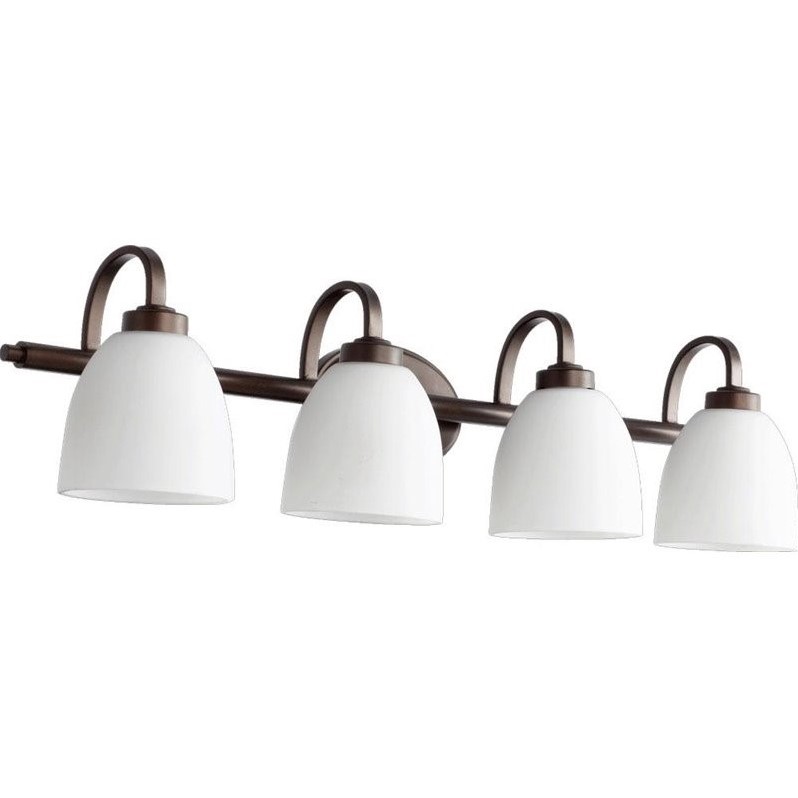 Quorum - Bath & Vanity Lighting - 5060486 - Finish: Oiled Bronze Number of Lights: 4Light Wattage: 100Socket: MediumShade Color: Satin OpalEnergy Star: NUL Type: DampStyle: Transitional