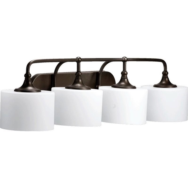 Quorum - Bath & Vanity Lighting - 5090486 - Finish: Oiled Bronze Number of Lights: 4Light Wattage: 100Socket: MediumShade Color: Satin OpalEnergy Star: NUL Type: DampStyle: Transitional
