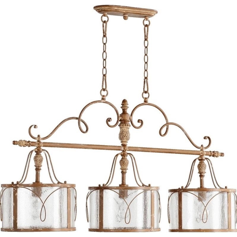Quorum - Island Lighting - 6506394 - Finish: French Umber Number of Lights: 3Light Wattage: 100Socket: MediumShade Color: Clear SeededEnergy Star: NUL Type: DryStyle: Transitional