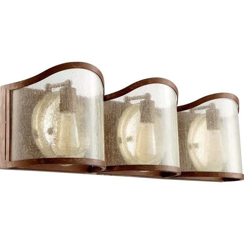 Quorum - Bath & Vanity Lighting - 5106394 - Finish: French Umber Number of Lights: 3Light Wattage: 100Socket: MediumShade Color: Clear SeededEnergy Star: NUL Type: DampStyle: Transitional