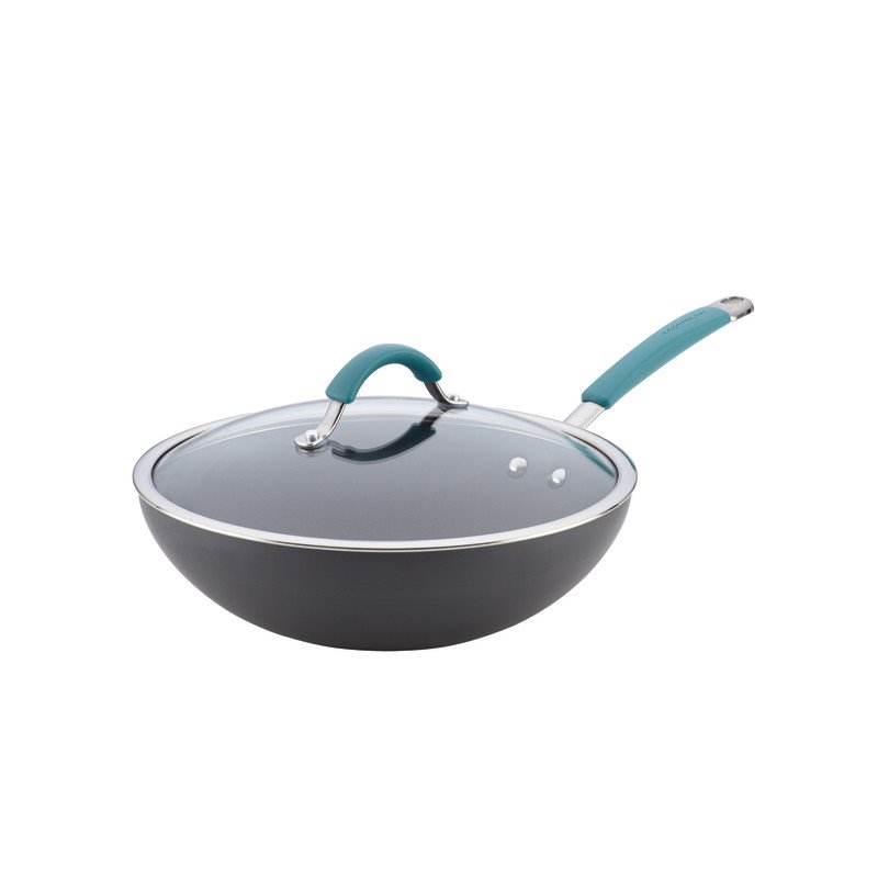 | Rachael Ray Cucina Hard-Anodized Stirfry Pan in Gray and Blue |