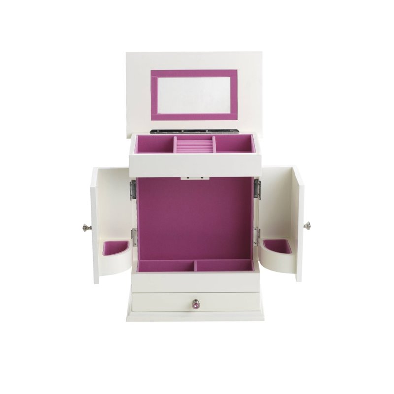 ![]() Reed & Barton - Jewelry Boxes - 566AP - The perfect gift for the young woman who has it all, the Bella Jewelry Chest from Reed & Barton showcases divided compartments and hooks for storing rings, bracelets and chains. Part of the Small Wonders Jewelry Chest Collection, this jewelry box features a white finish contrasted against a hot pink interior of flocked velvet. Finish: White Satin; Material: Wood Veneer over MDF; Earring drawer; Pink jewelled nickel finished knobs; 2 doors with corner catch-alls; Pendant hooks in interior; Bright pink framed mirror in lid. Specifications:Overall Product Dimension: 2.75""H x 12""W x 19.5""D; Product Weight: 9 lbs. Price: 125.00 |