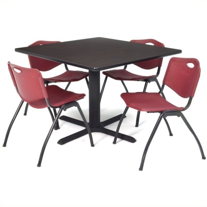 | Regency Square Lunch Table and 4 Burgundy Stack Chairs in Mocha Walnut |