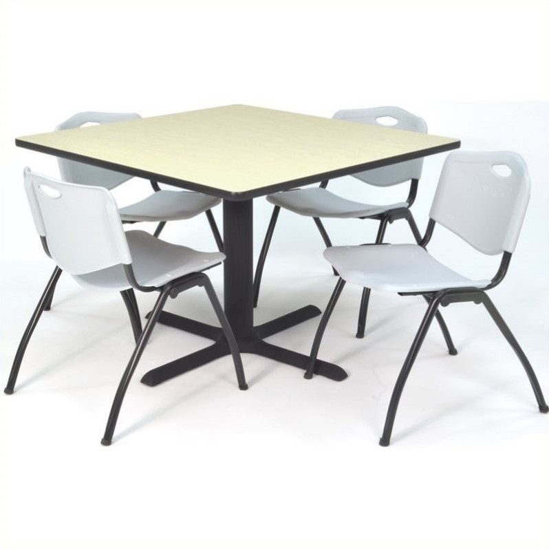 | Regency Square Lunchroom Table and 4 Grey M Stack Chairs in Maple |