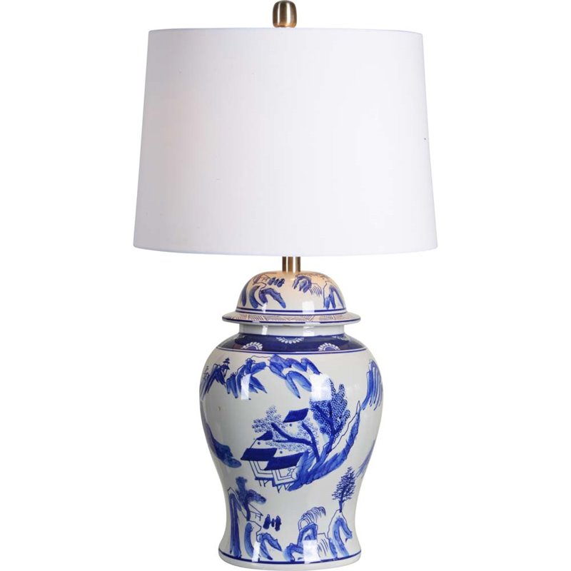 ![]() Renwil - Table Lamps - LPT701 - This decorative table lamp is the ultimate lighting accent for eclectic spaces with a worldly design sense. Painted on a ceramic base, every angle of this blue and white light fixture depicts classic chinoiserie of mountaintop villages, trees and flowers. The off-white drum lampshade keeps the focus solely on the base as it captures attention and captivates a room.Finish: Blue and White; Style: Eclectic; Off white TC shade; Switch Type: 3-Way. SpecificationsOverall Product Dimensions: 28"" H x 16"" W x 16"" D; Overall Product Weight: 11 lbs; Max Wattage: 60; Bulb Type: A; Bulb Base: E26; Number of Bulbs: 1. Price: 328.99 |