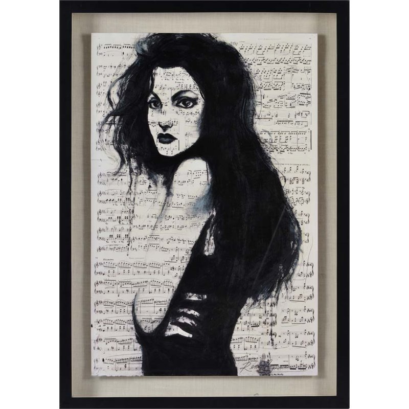 ![]() Renwil - Prints / Paintings - W6356 - Sheet music becomes creative canvas for this modern wall art portrait that's equal parts rock and roll and romance. Strong black shading articulates the girl's introverted disposition, while the musical notes that cover her face and skin reveal the song in her heart. Mounted to a beige mat and framed in black wood, the muse within this glamorous print is perfect in a music room or private studio.Finish: Black; Style: Glamour; Product Material: Paper, Wood, Gloss, MDF; Framed wall decor; Rectangular format hangs vertically; Hanging Hardware Included. SpecificationsOverall Product Dimensions: 38"" H x 27"" W x 2.2"" D; Overall Product Weight: 26 lbs. Price: 328.99 |