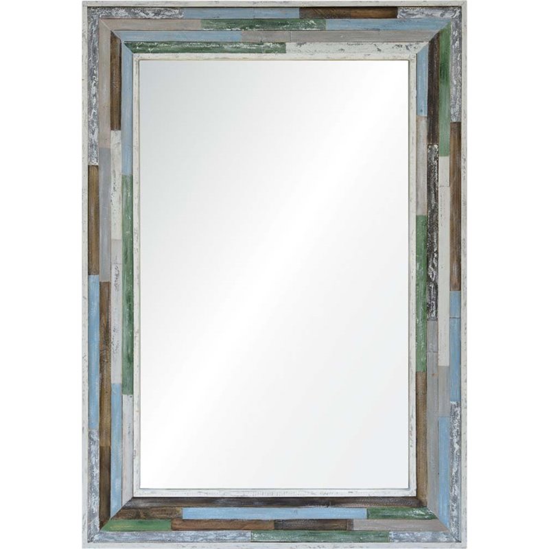![]() Renwil - Accent Mirrors - MT1714 - The worn textures of this decorative wall mirror evoke the appearance of hand-scraped wood planks. Individually weathered wood strips in frosty shades of blue, green and gray are randomly placed within a white wood frame, recreating the look of antique barnwood from a snowy farmhouse. The reclaimed nature of the mirror is perfect among other rustic furnishings, complementing leather upholstery and stone floors with the perfect amount of downhome style.Finish: Multicolor; Style: Traditional ; Wood & MDF frame; Rectangular format hangs horizontally or vertically; Framed mirror; Hanging hardware included. SpecificationsOverall Product Dimensions: 46"" H x 34"" W x 1.5"" D; Overall Product Weight: 45 lbs. Price: 350.99 |