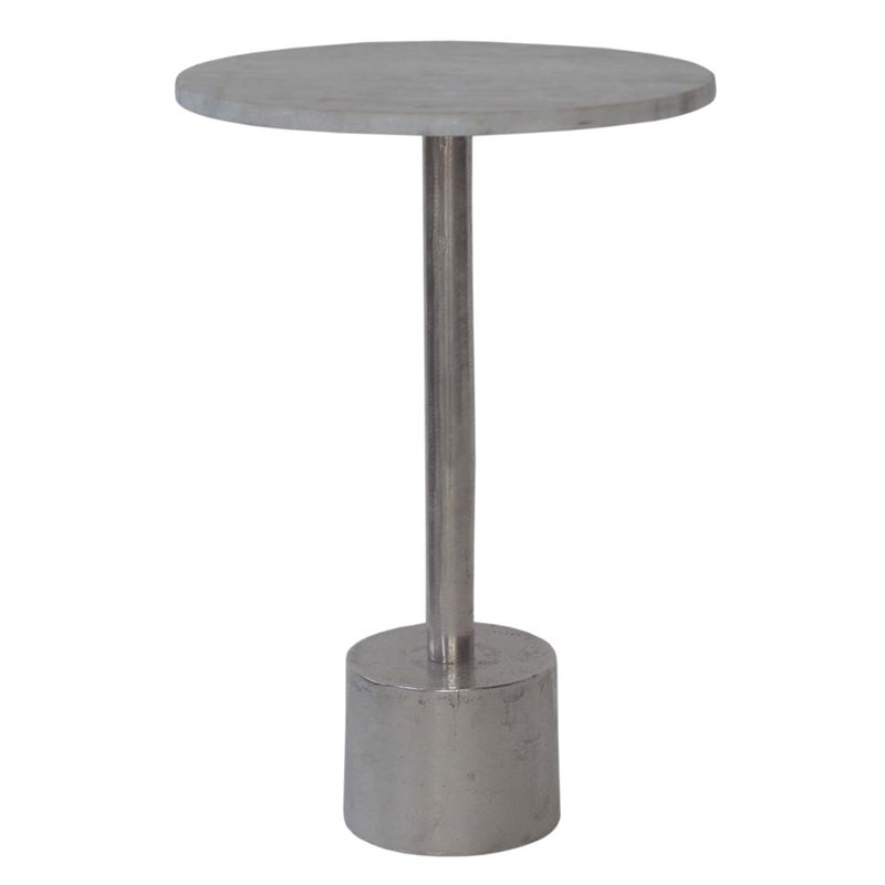 ![]() Renwil - Accent Tables - TA118 - Smarten up your stylish pad with the simple silhouette of this modern accent table. The smooth, circular raw iron base is finished in raw nickel and complements the delicate veining of a natural gray marble tabletop. Featuring a monochromatic metallic color palette and slight frame, this decorative end table is perfect for interiors with minimal space but maximum style.Finish: Raw Nickel; Accent Table is constructed in iron and marble. SpecificationsOverall Product Dimensions: 21"" H x 14"" W x 14"" D; Overall Product Weight: 16 lbs. Price: 160.99 |