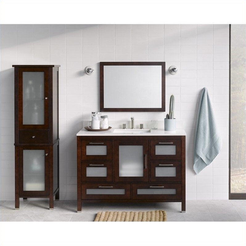 ![]() Ronbow - Bathroom Vanities - 0315481H01Kit1 - Constructed for practicality and designed to grace powder rooms with a touch of elegance, the Athena collection bring elements of contemporary and transitional design together. Frosted glass doors charm the front of the vanity providing full-extension drawers and extensive counter space. Solid wood with hardwood plywood construction: NO MDF OR FILLERS; Durable, water resistant polyurthane finish; Matching finish throughout the interior; 6 Full Extension, Soft Close drawers with Dovetail construction; Frosted glass drawer front; Frosted glass door front; 1 Soft-Close door; Quality German all-metal, heavy duty hardware; Free-standing; Faucet not included, Quartz countertop. Set Includes:1 Vanity Base Cabinet; 1 TechStone Vanity Top - 3/4"" Thick; 1 TechStone Backsplash; 1 Contemporary Linen Cabinet Storage Tower; 1 Contemporary Wood Framed Bathroom Mirror; 1 Rectangle Ceramic Undermount Sink; 1 3/4"" Metal Feet for the Athena or Kali Bathroom Variety Collection; 1 3/4"" Metal Feet for the Mica or Cami Bathroom Variety Collection; 3 Faucet Hole. . Specifications:Overall Product Dimension: 38.5""H x 48.56""W x 22.06""D; Overall Product Weight: 392 lbs; Overall product dimension includes backsplash. Price: 4656.75 |