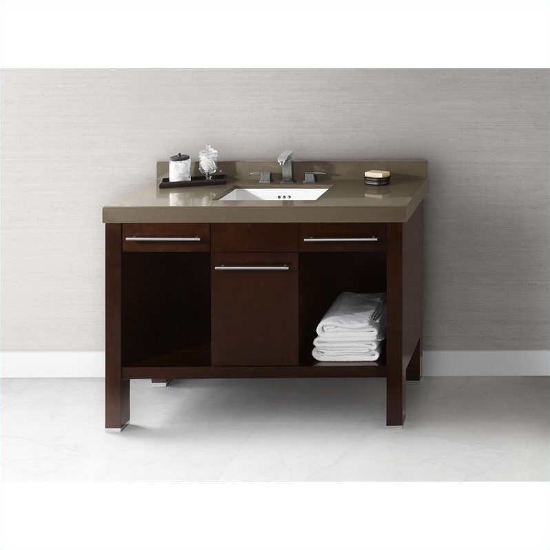 ![]() Ronbow - Bathroom Vanities - 033748H01Kit3 - The natural look of the Brennon is an amiable statement piece for every designer’s dream bathroom. The open design of the vanity is both eye-catching and functional, providing full extension drawers for storage. Solid wood with hardwood plywood construction: NO MDF OR FILLERS; Durable, water resistant polyurthane finish; Matching finish throughout the interior; 2 Full Extension, Soft Close drawers with Dovetail construction; Solid wood drawer front; Solid wood door front; 1 Soft-Close door; Quality German all-metal, heavy duty hardware; Free-standing; Faucet not included, Quartz countertop. Set Includes:1 Vanity Base Cabinet; 1 TechStone WideAppeal Vanity Top - 2 3/4"" Thick; 1 TechStone Backsplash; 1 Rectangle Ceramic Undermount Sink; 1 2"" Metal Feet; 3 Faucet Hole. . Specifications:Overall Product Dimension: 40""H x 48.56""W x 22.25""D; Overall Product Weight: 240 lbs; Overall product dimension includes backsplash. Price: 2871.00 |