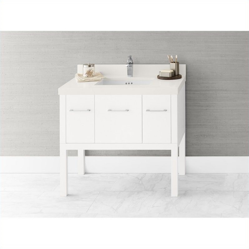 ![]() Ronbow - Bathroom Vanities - 036836W01Kit1 - Available in both a black or white finish, the sophisticated look of the Calabria uses clean design work to outline the deep full-extension drawers. This free-standing vanity serves as a staple piece in a modern master room or in a chic powder room. Solid wood with hardwood plywood construction: NO MDF OR FILLERS; Durable, water resistant polyurthane finish; Matching finish throughout the interior; 2 Full Extension, Soft Close drawers with Dovetail construction; Solid wood drawer front; Solid wood door front; 1 Soft-Close door; Quality German all-metal, heavy duty hardware; Free-standing; Quartz countertop. Set Includes:1 Vanity Base Cabinet; 1 TechStone WideAppeal Vanity Top - 2"" Thick; 1 TechStone Backsplash; 1 Rectangle Ceramic Undermount Sink; 1 Faucet Hole. . Specifications:Overall Product Dimension: 36.5""H x 36.58""W x 22.24""D; Overall Product Weight: 138 lbs; Overall product dimension includes backsplash. Price: 2279.25 |