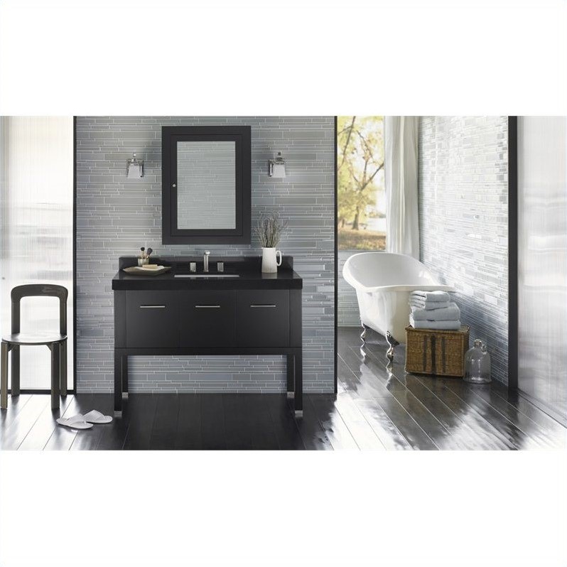 ![]() Ronbow - Bathroom Vanities - 036848B02Kit3 - Available in both a black or white finish, the sophisticated look of the Calabria uses clean design work to outline the deep full-extension drawers. This free-standing vanity serves as a staple piece in a modern master room or in a chic powder room. Solid wood with hardwood plywood construction: NO MDF OR FILLERS; Durable, water resistant polyurthane finish; Matching finish throughout the interior; 2 Full Extension, Soft Close drawers with Dovetail construction; Solid wood drawer front; Solid wood door front; 1 Soft-Close door; Quality German all-metal, heavy duty hardware; Free-standing; Quartz countertop. Set Includes:1 Vanity Base Cabinet; 1 TechStone WideAppeal Vanity Top - 2 3/4"" Thick; 1 TechStone Backsplash; 1 Rectangle Ceramic Undermount Sink; 1 2"" Metal Feet; 1 Neo-Classic Wood Framed Medicine Cabinet; 3 Faucet Hole. . Specifications:Overall Product Dimension: 38""H x 48.56""W x 22.25""D; Overall Product Weight: 237 lbs; Overall product dimension includes backsplash. Price: 3336.00 |