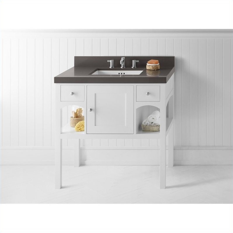 ![]() Ronbow - Bathroom Vanities - 056136W01Kit1 - The classic and open design of the Langley is perfect for the master suite and the kids bathroom alike. The collection offers soft close doors and drawers and open shelves perfect for decor or bubble bath. Solid wood with hardwood plywood construction: NO MDF OR FILLERS; Durable, water resistant polyurthane finish; Matching finish throughout the interior; 2 Full Extension, Soft Close drawers with Dovetail construction; Solid wood drawer front; Solid wood door front; 1 Soft-Close door; Quality German all-metal, heavy duty hardware; Free-standing; Faucet not included, Quartz countertop. Set Includes:1 Vanity Cabinet Base; 1 TechStone WideAppeal Vanity Top - 2"" Thick; 1 TechStone Backsplash; 1 Rectangle Ceramic Undermount Sink; 3 Faucet Hole. . Specifications:Overall Product Dimension: 39.95""H x 36.61""W x 22.25""D; Overall Product Weight: 78 lbs; Overall product dimension includes backsplash. Price: 2178.00 |