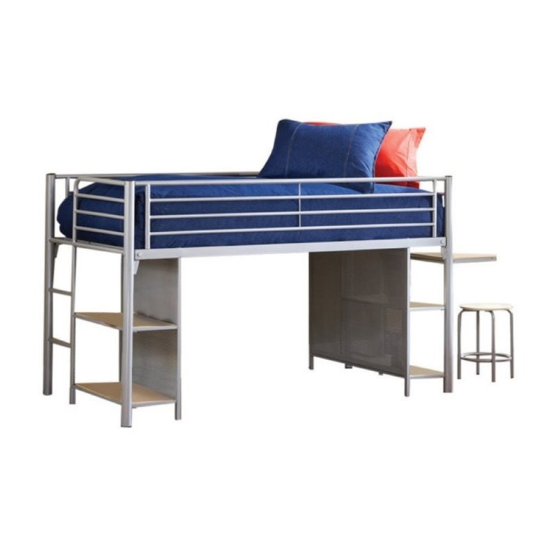 | Rosebery Kids Junior Bookcase Loft Bed with Desk and Stool in Silver |