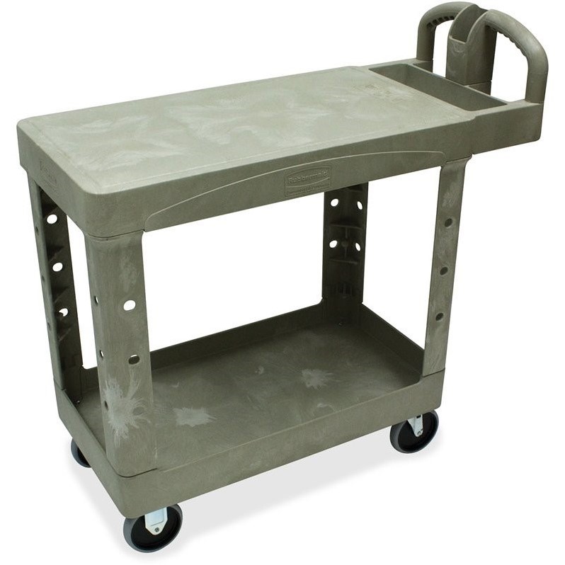 ![]() Rubbermaid - Transport Carts - RCP450500BG - Small utility cart is perfect for transporting materials, supplies and heavy loads in almost any environment. Two versatile flat shelves are designed for transport of bulky items. Ergonomically designed push handle provides optimum hand placement and push height, improving control and worker safety. Use molded-in storage compartments, holsters, hooks and notches to carry loads with more safety and efficiency. Cart also features molded-in customizable fittings and easy-access bottom shelf. High-density, structural resin construction resists rust and corrosion. Best-in-class casters meet the most demanding environments. Weight capacity is 500 lb. with a 250 lb. capacity for each shelf. General Information Manufacturer: Newell Rubbermaid, Inc Manufacturer Part Number: 450500 BEIG Manufacturer Website Address: http://www.rubbermaid.com Product Name: Flat Shelf Utility Cart Packaged Quantity: 1 Each Product Information Total Number of Shelves: 2 Maximum Load Capacity: 500 lb Number of Casters: 4 Caster Size: 5"" Heavy Duty,Rust Resistant,Corrosion Resistant Physical Characteristics Color: Beige Height: 33"" Width: 19"" Depth: 38"" Price: 272.99 |